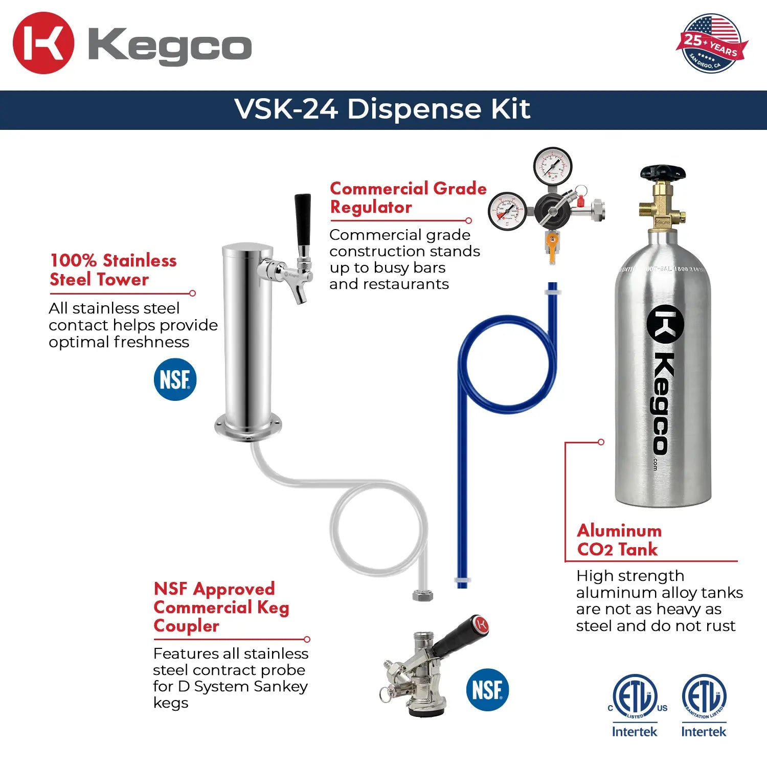 - Premium dispense components include a 100% stainless steel contact tower, a premium dual gauge regulator and a corrosion-resistant CO2 tank