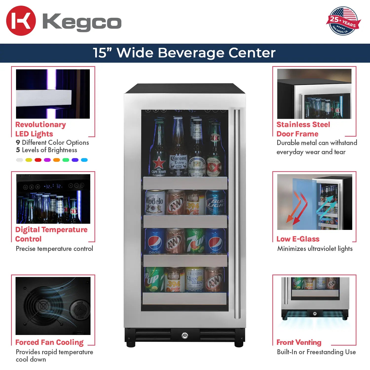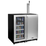 The VS15-BK Built-In Undercounter Side-by-Side Beverage Center and Single Faucet Keg Dispenser is the ultimate beverage dispensing unit to upgrade your home bar or kitchen. This sleek and sophisticated kegerator and refrigerator combination lets you have the best of both worlds. Cold beer on tap and perfectly chilled drinks are within arms reach with this beverage center that can hold up to 7 gallons of draft beer, 28 standard beer bottles, and 64 standard 12 oz. beverage cans. This unit is perfect for daily use and entertaining, providing you with a variety of beverage options. The unit is designed with a French door swing to easily access both the keg and your beverages simultaneously. Digital temperature display for both sides allows you to easily maintain and control the temperature. Manufactured by the industry leaders in the beverage industry, Kegco and Allavino, these units include only premium parts with all stainless steel contact and all parts are serviceable. PLEASE NOTE THIS IS TWO SEPARATE UNITS.