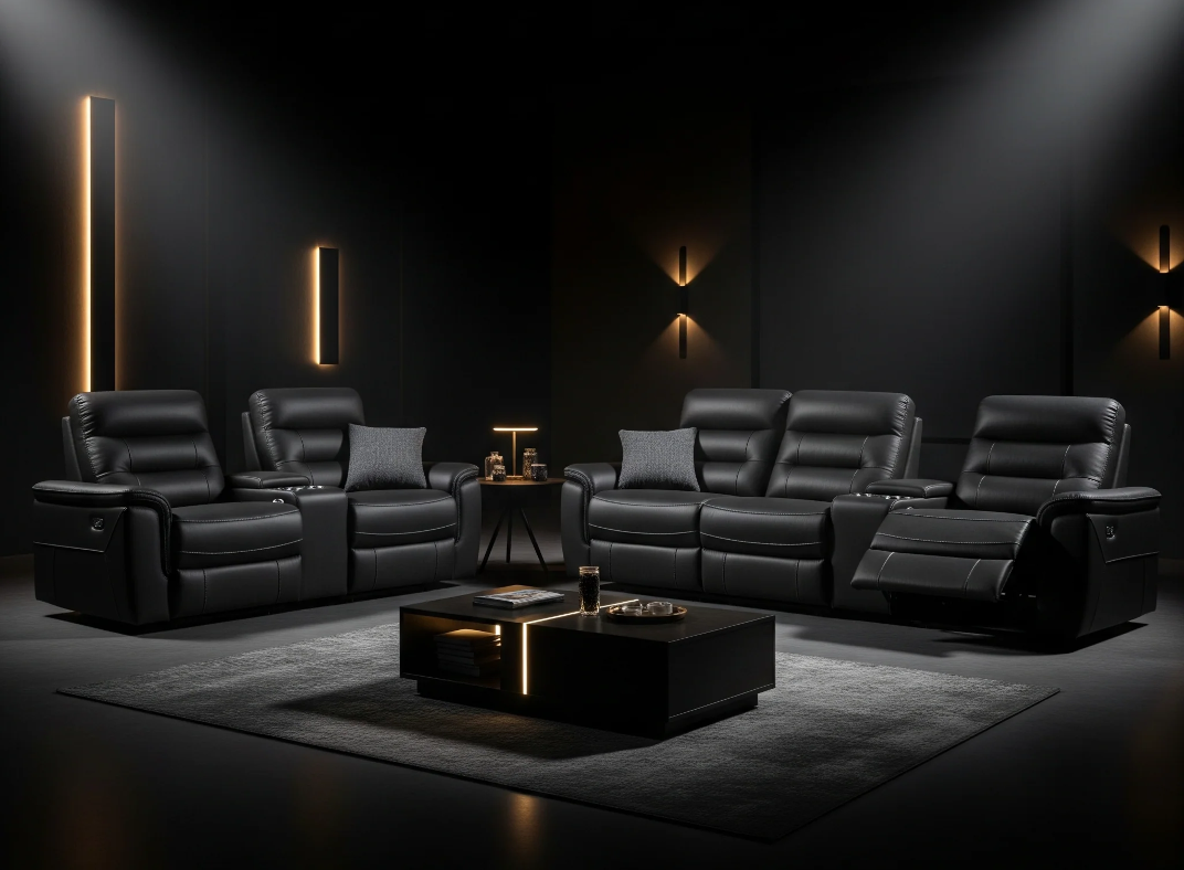 Enhance your décor with furniture that merges style with function. Choose from sleek leather recliners, modular layouts, and premium finishes to complement your entertainment room.