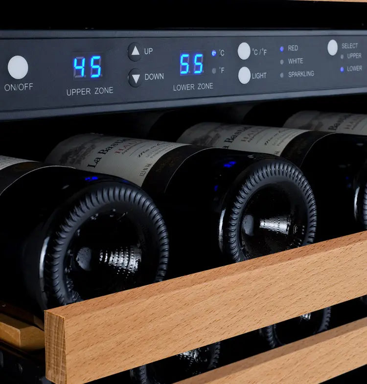 - Digital control panel allows you to precisely set the temperature between 41-61 F in the upper zone and 45-64 F in the lower zone